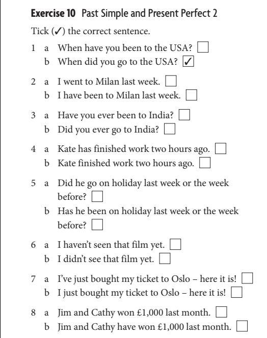 2 и 5 это а,так как есть указание,когда было совершено действие.Это Past Simple.