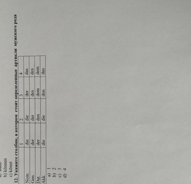 В третьем столбике стоят артикли мужского рода, значит, правильный ответ с) 3