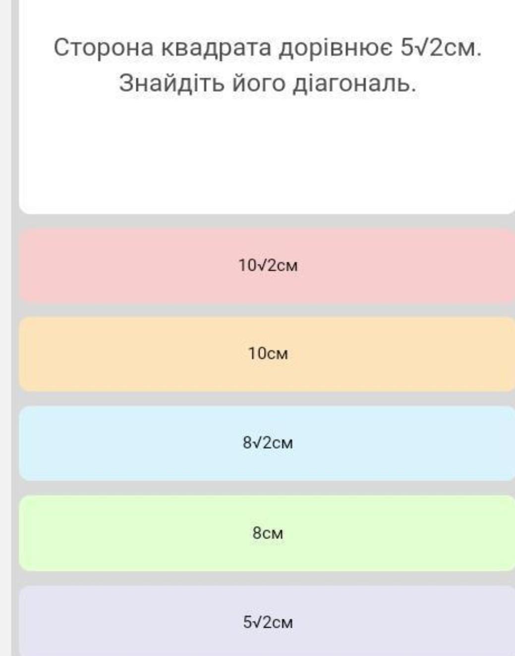якщо сторона квадрата а, то діагональ а корінь з 2