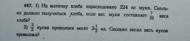 1) 224:7/10 = 224*10/7 = 32*10 = 320 кг будет весить хлеб.