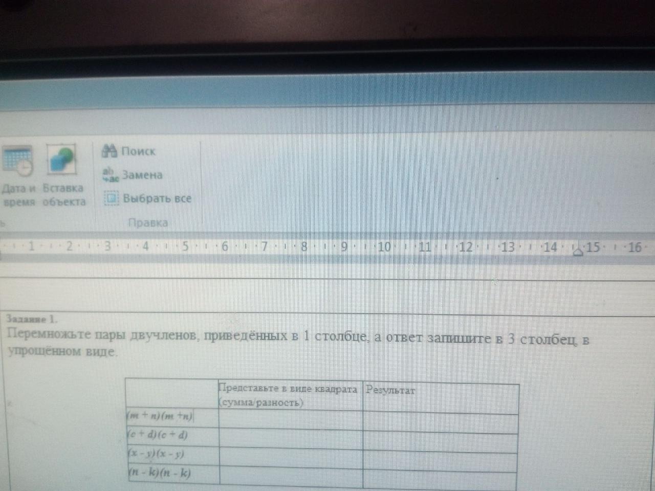 Перемножьте пары двучленов, приведённых в 1 столбце, а ответ запишите в 3 столбец, в упрощённом виде.