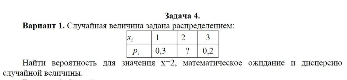 Дисперсия равна М(х²)-М²(х)=1*0.3+4*0.5+9*0.2-1.9²=