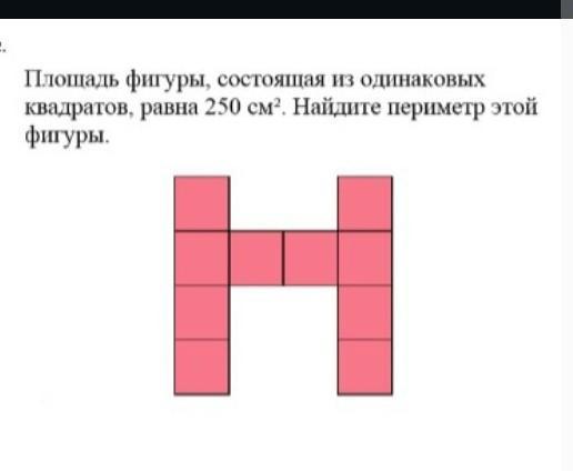 Площадь фигуры состоящая из одинаковых квадратов, равна 250 см². Найдите периметр этой фигуры