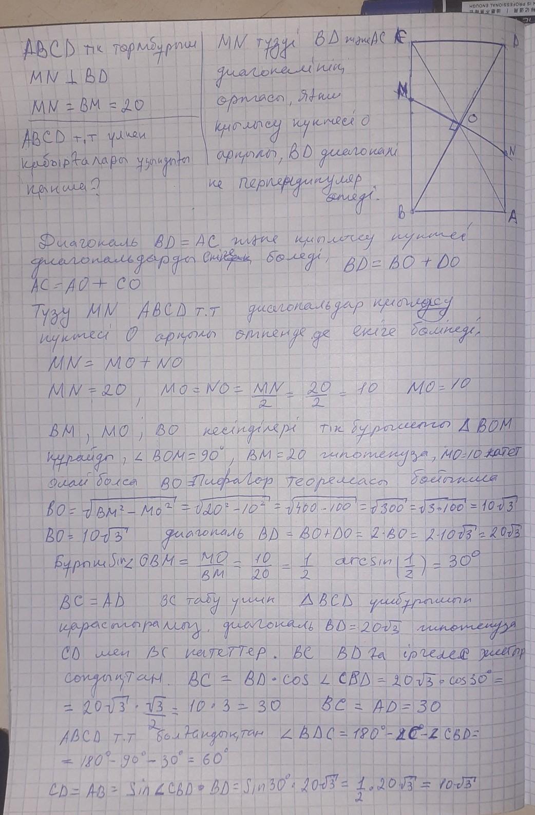 сәйкесінше М мен N нүктеде қияды. Егер MN=BM=20