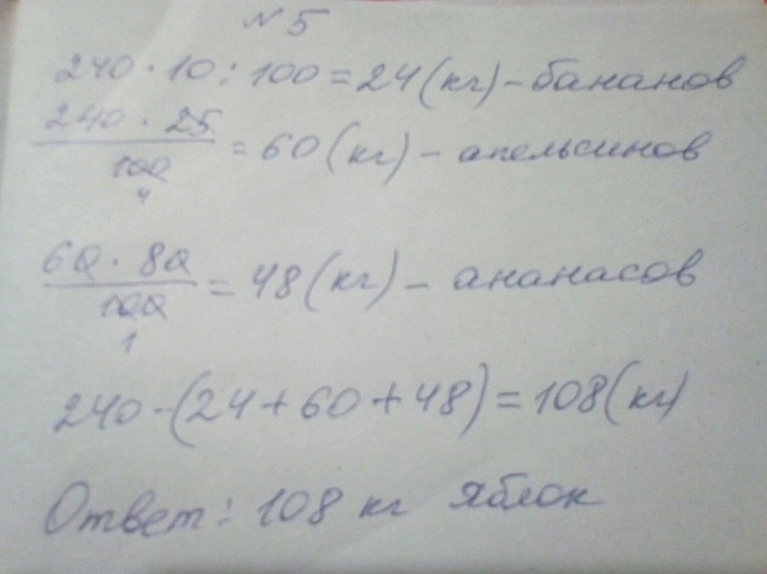 5 В магазин завезли 240 кг фруктов, из них 10% бананов, 25%