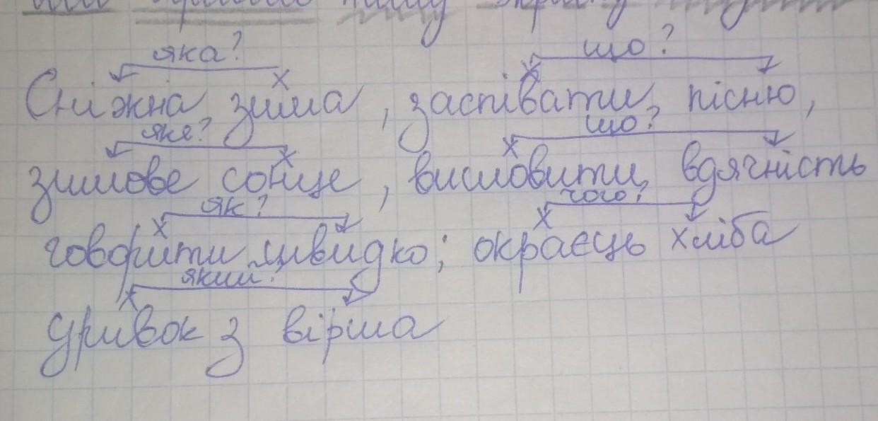 позначене як "х" - головне слово, від нього стрілочкою залежне)