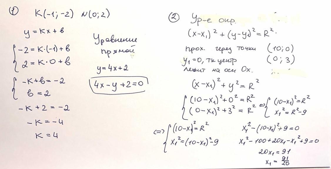 2)Напиши уравнение окружности, которая проходит через точку 10 на оси Ox и через точку 3 на оси Oy, если известно, что центр находится на оси Ox.