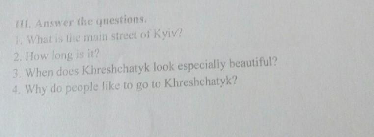 4. People like to go to the Khreshchatyk, because there are many good shops and big markets. Also other people go to the cinema, look at the fountains or sit on the benches.