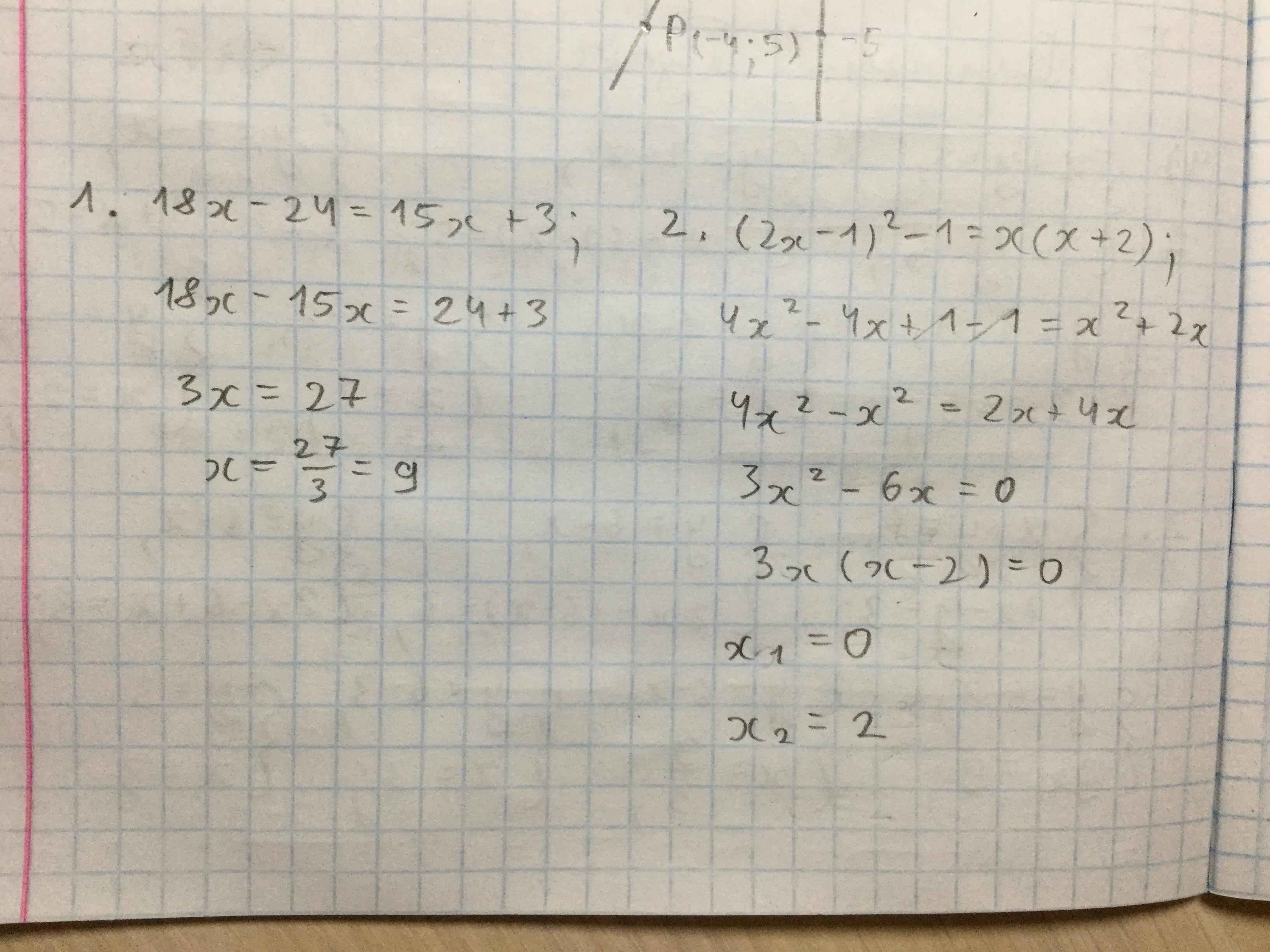 1. 18x-24=15x+3