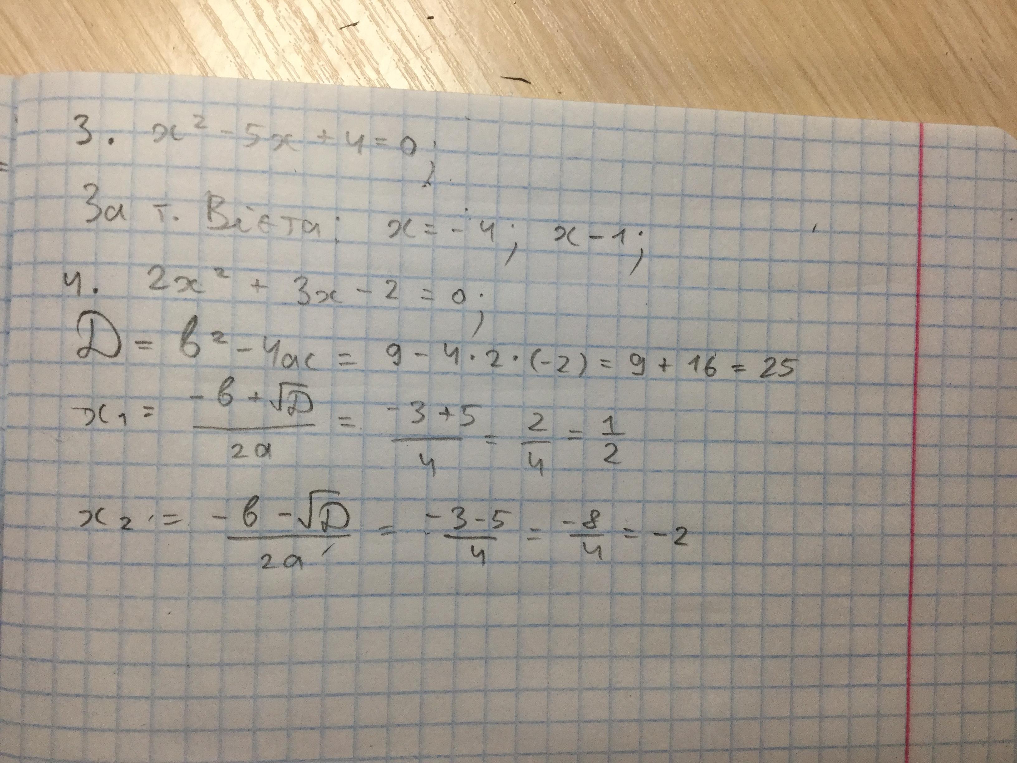 4. 2x²+3x-2=0