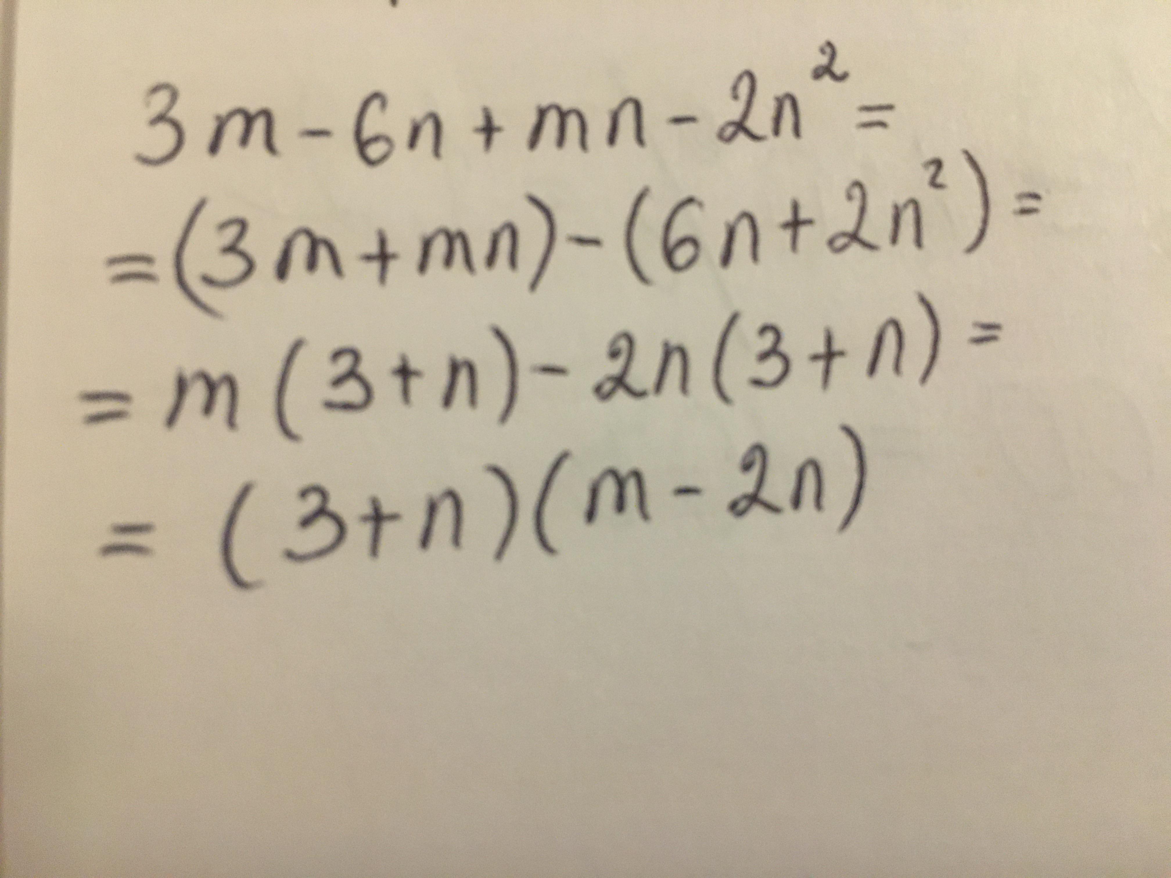 3m-6n+mn-2n²=(3m-6n)+(mn-2n²)=3(m-2n)+n(m-2n)=(m-2n)(3+n)