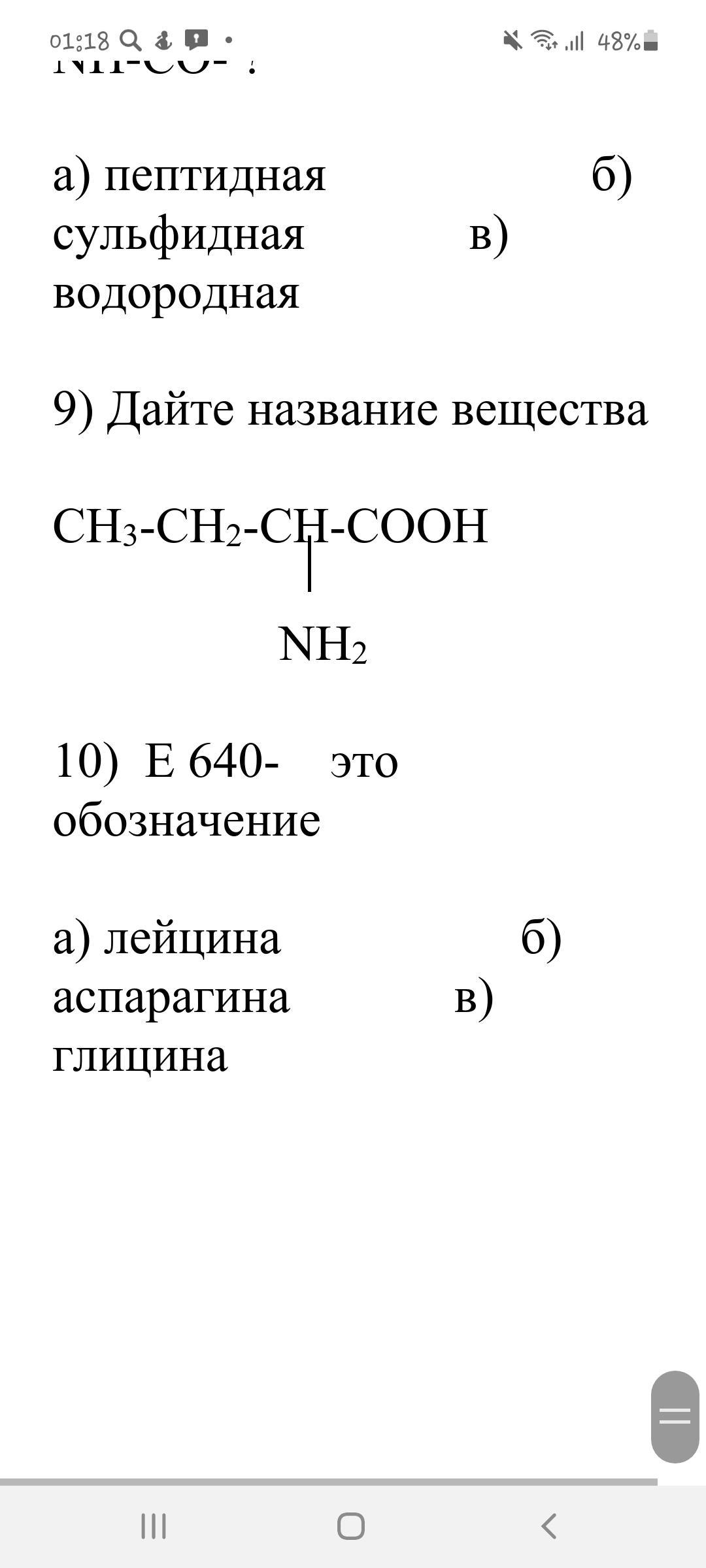 9)2-аминобутановая к-та или 2-аминомасляная к-та;