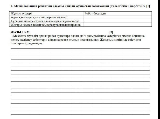 Ответ:дәл қазіргі кезде барлық оқу орнында болмаған мен кей университеттерде мұғалім орнын арнайы үйретіліп жабдықталған адам пішіндес роботтар басып,сабақ беруде. Мысалы: Японияда бір профессор өзінің прототипінде робот жасап алыстан бақылай отыра бірнеше жерде бір уақытта сабақ береді. Қазіргі кезде толығымен орнын баса алады деп айта алмаймыз. Алайда алдымыздағы кезеңде мұның әбден мүмкін екендігіне жәнеде жүзеге асатындығына көзім анық жетеді