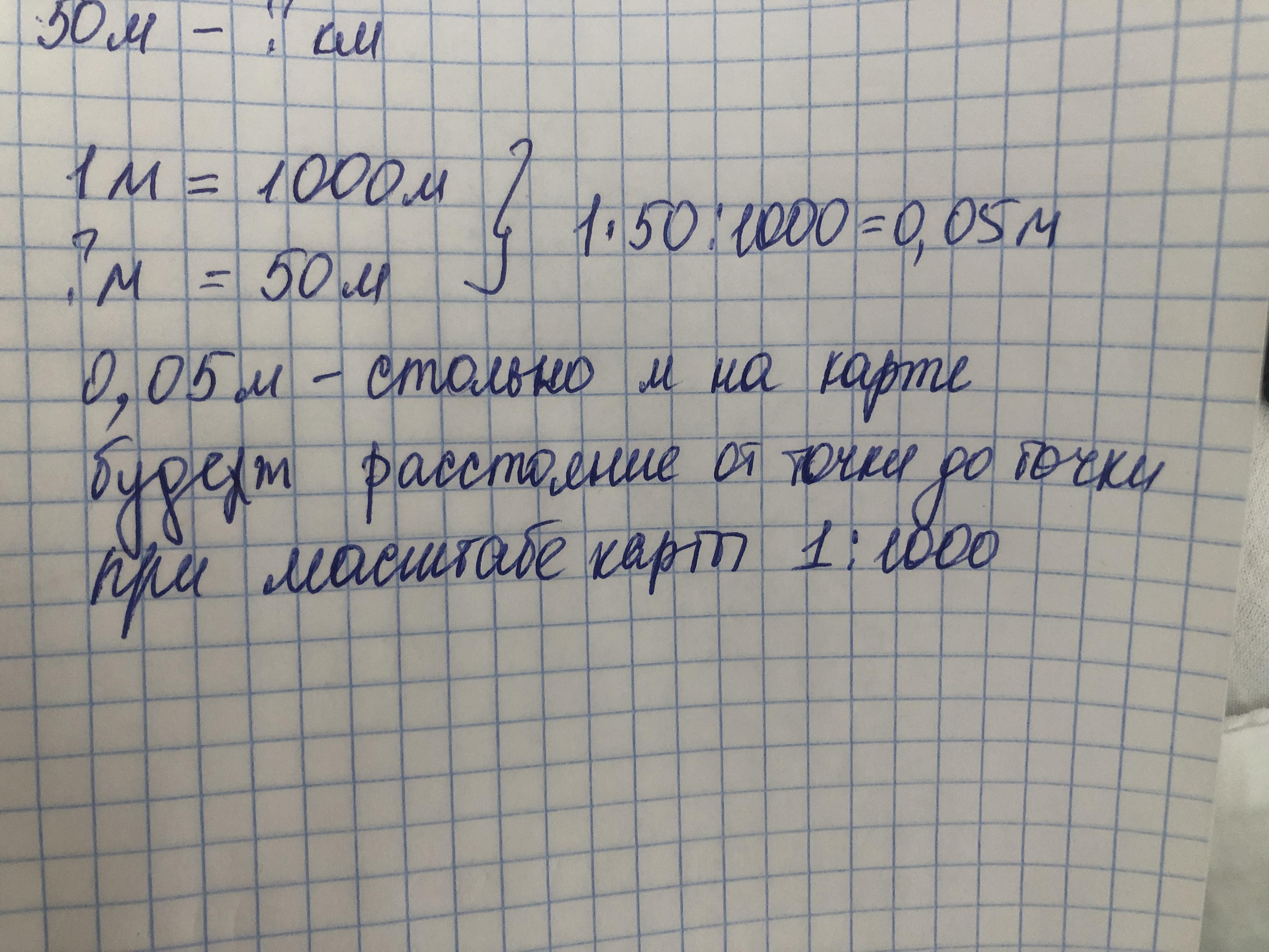 Масштаб карты 1м:1км. Скольки сантиметрам будет равняться отрезок длиной 50м на данной карте? *