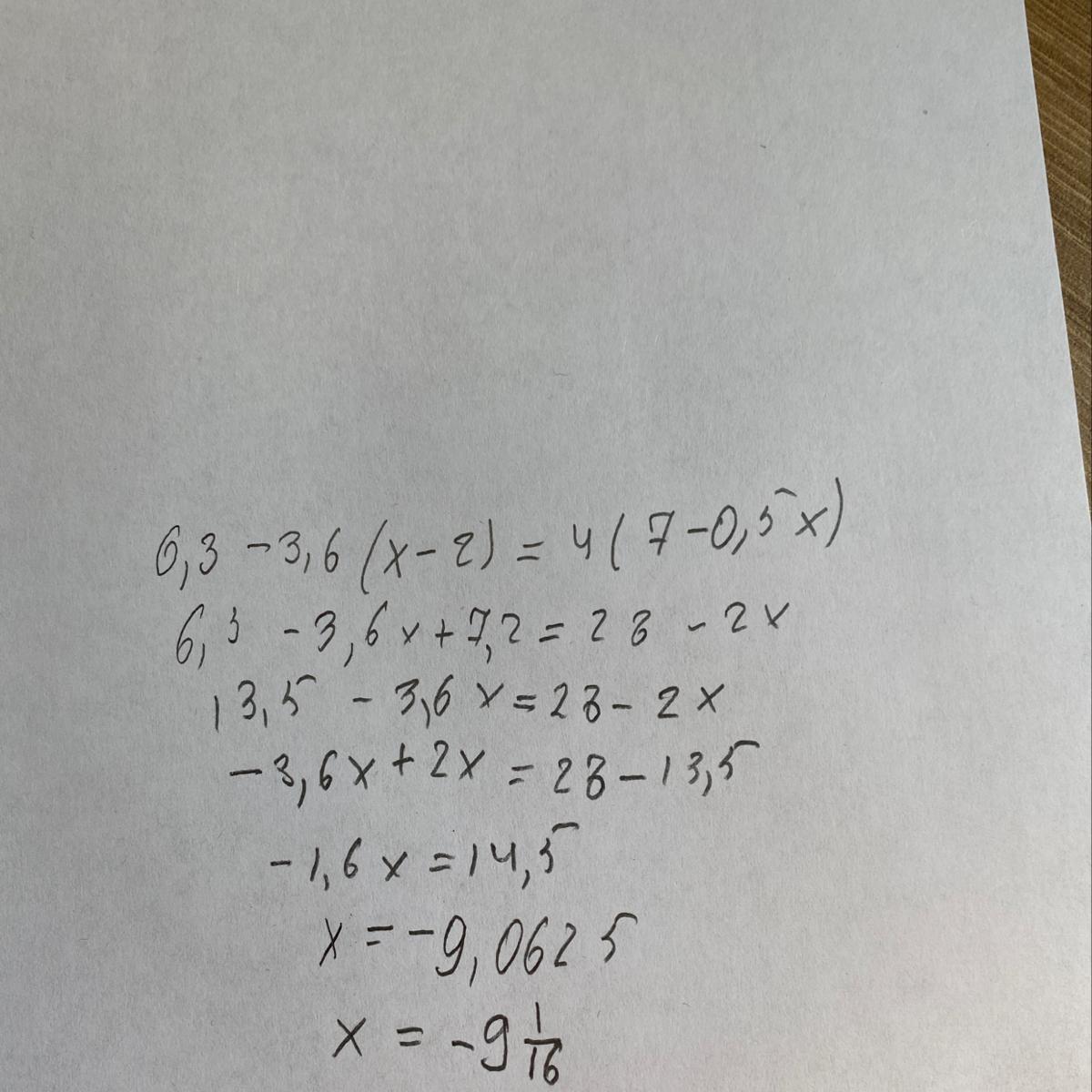 6,3 - 3,6(x-2)=4(7-0,5x)