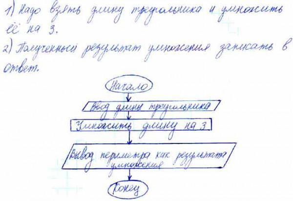 Запиши посторочно алгоритм вычисления периметра равностороннего треугольника.Составь блок-схему этого алгоритма