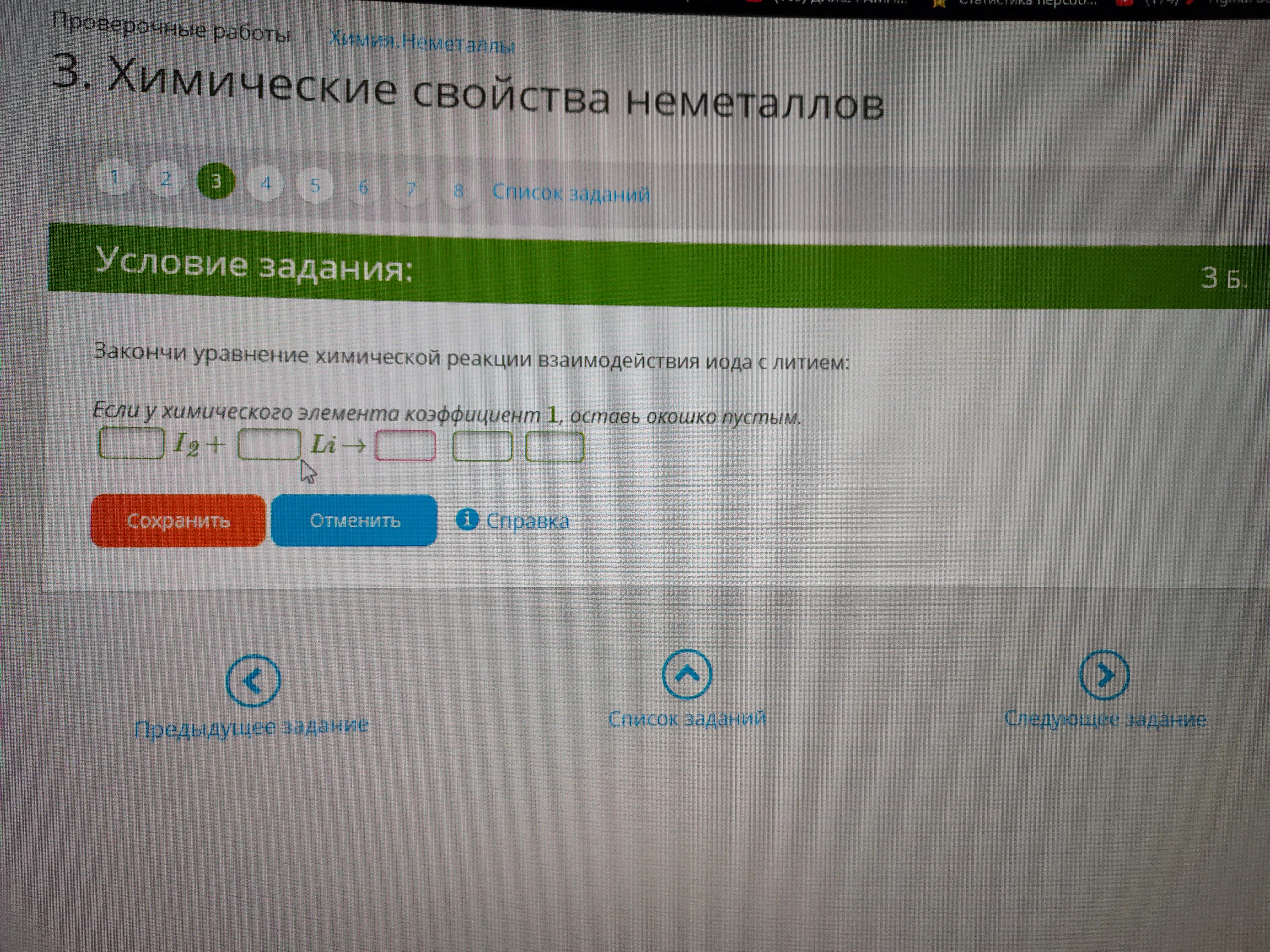 Закончи уравнение химической реакции взаимодействия иода с литием: