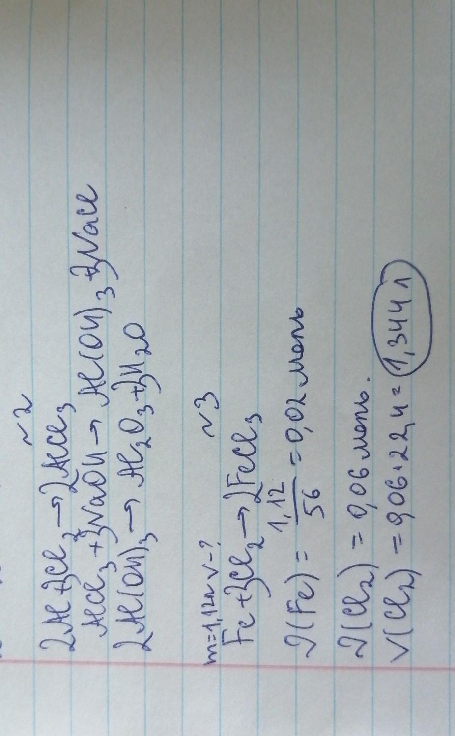 3. Какой объём хлора потребуется для взаимодействия с 1,12г железа?