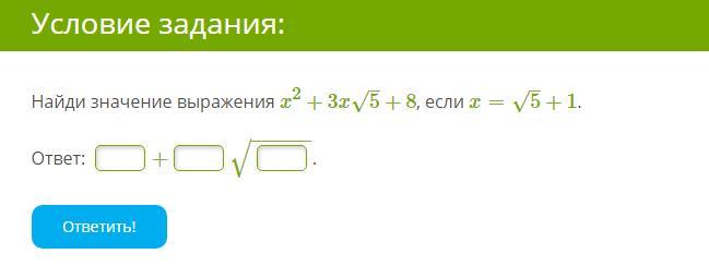 Найди значение выражения x2+3x5–√+8, если x=5–√+1.