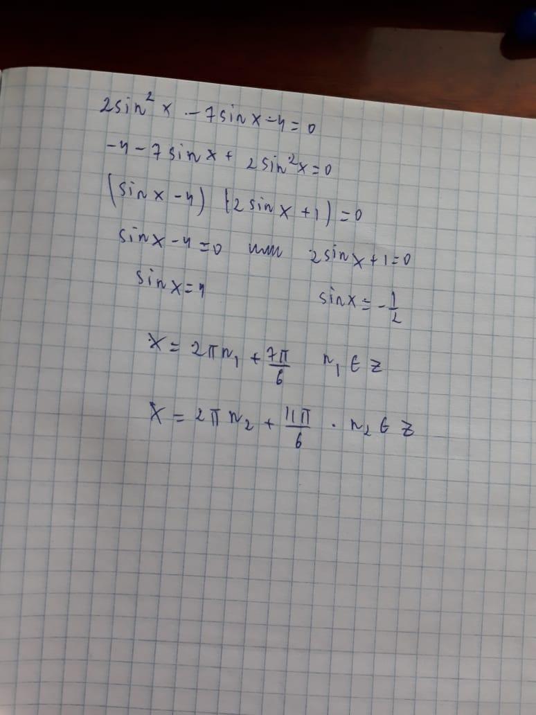 2 sin'2 x-7 sin x – 4 = 0