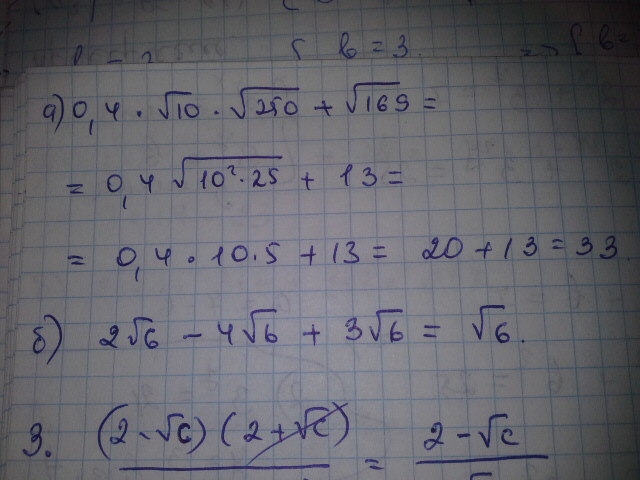 1 )Вычислить а) 0,4√10*√250+√169 б) √24-4√б+√54
