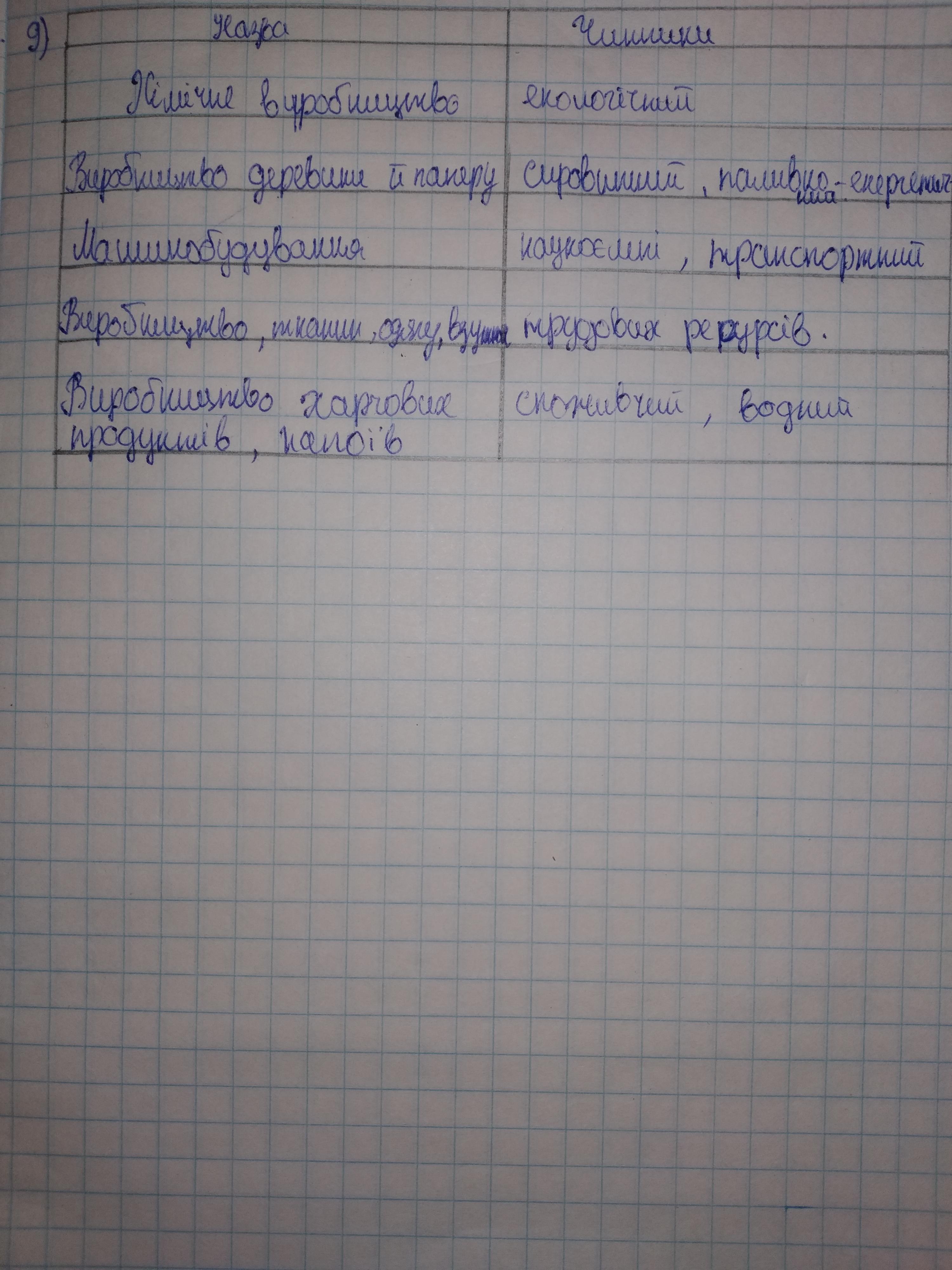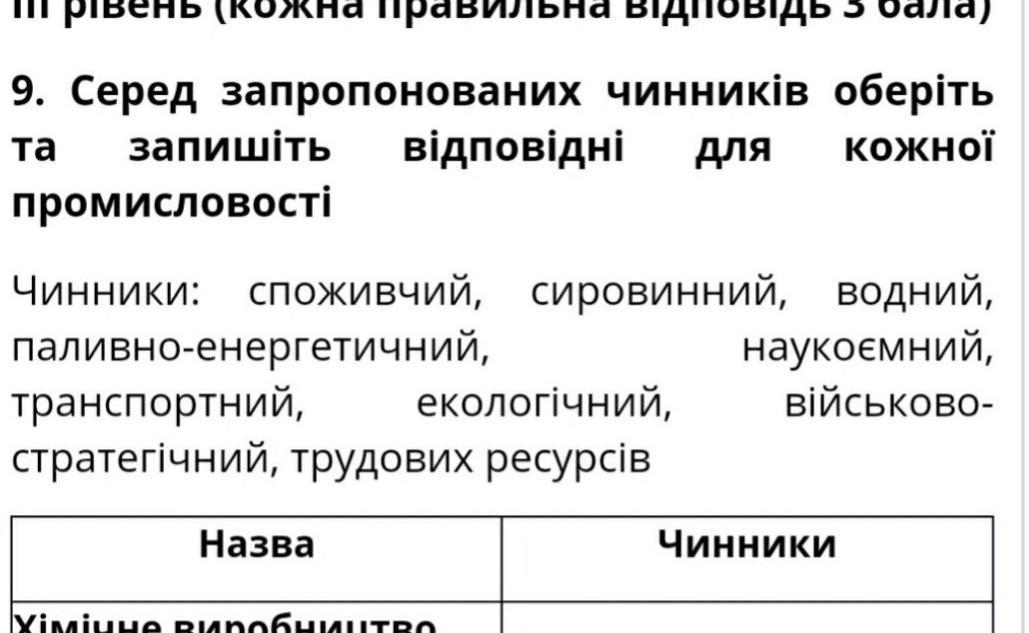 серед запропонованих чинників оберіть та запишіть відповідні для кожної промисловості