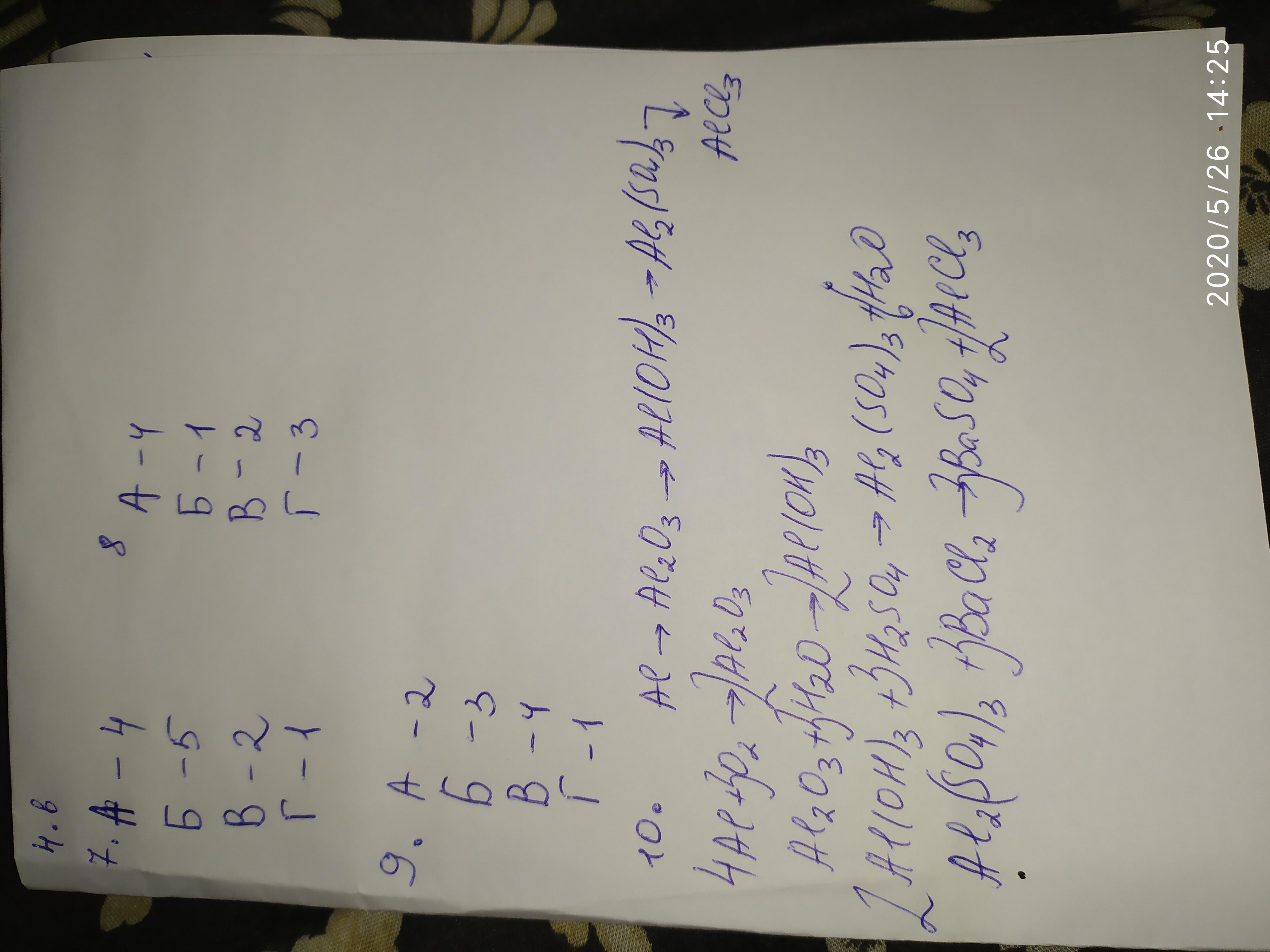Алюминий → Алюминий оксид → Алюминий гидроксид → алюминий сульфат → алюминий хлорид