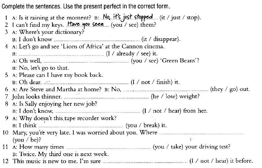 3. A: Where's your dictionary? B: I don't know, it's just disappeared.