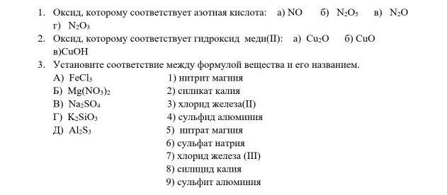 2)Оксид, которому соответствует гидроксид меди (II) CuO