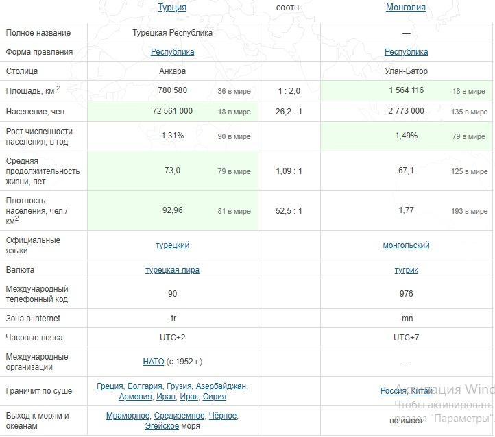 Выполнить сравнительную характеристику стран Азии: Турция и Монголия