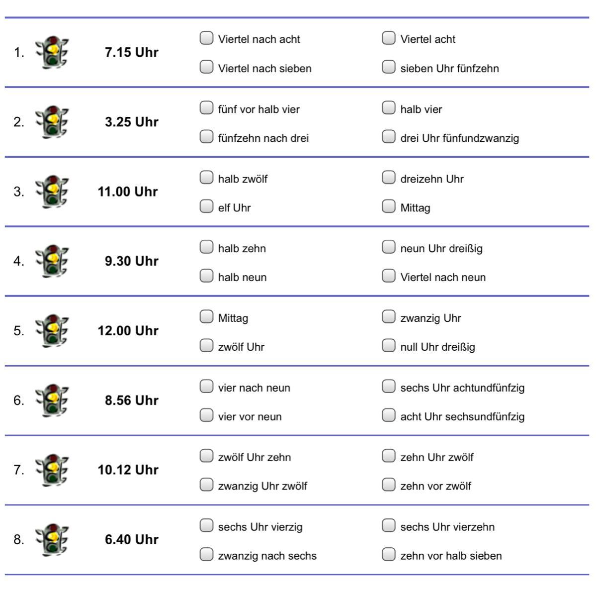 6)vier vor neun und acht Uhr sechsundfünfzig