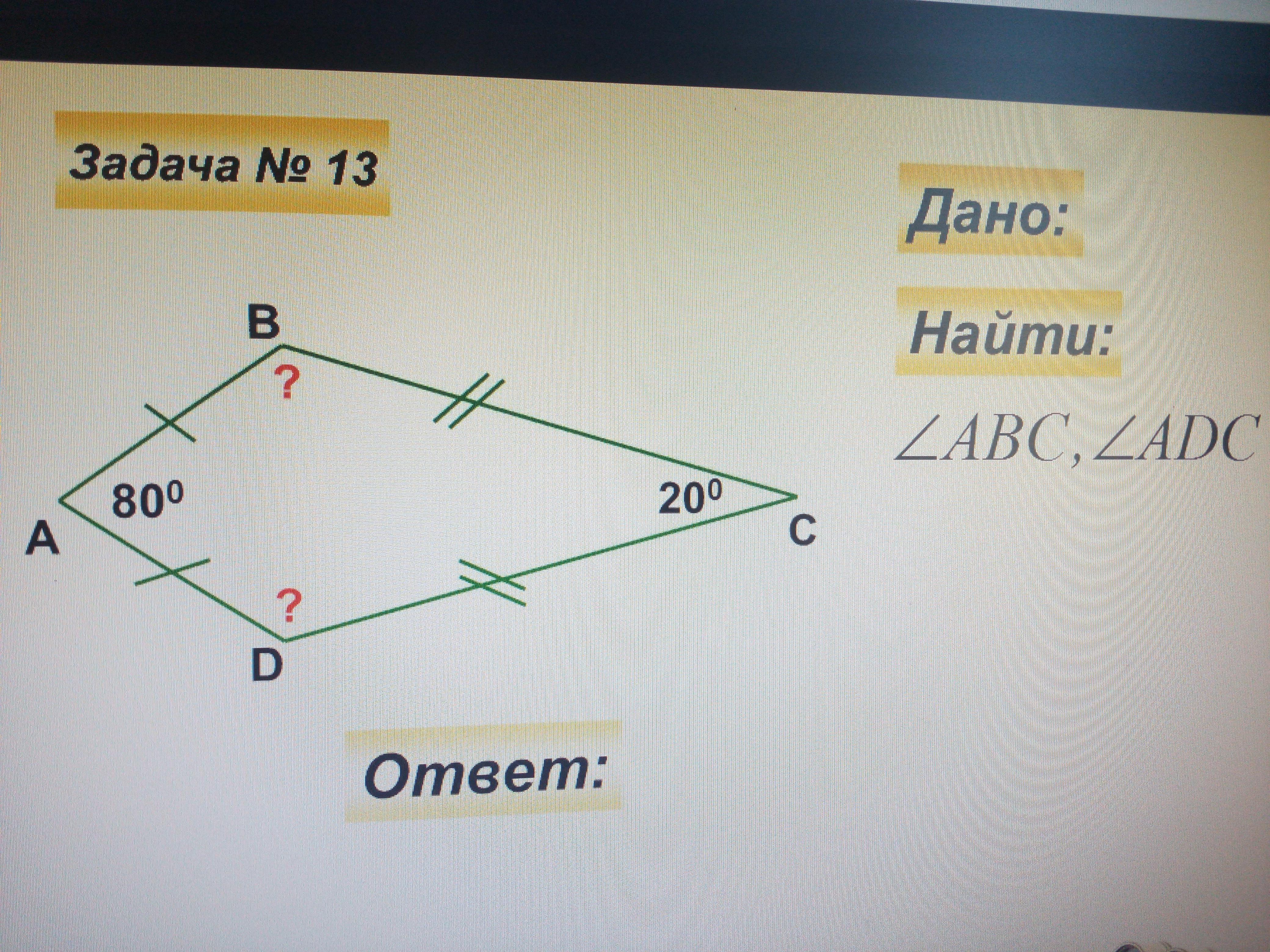 Углы АВС и ADC=(360°-20°-80°):2=260°:2=130°