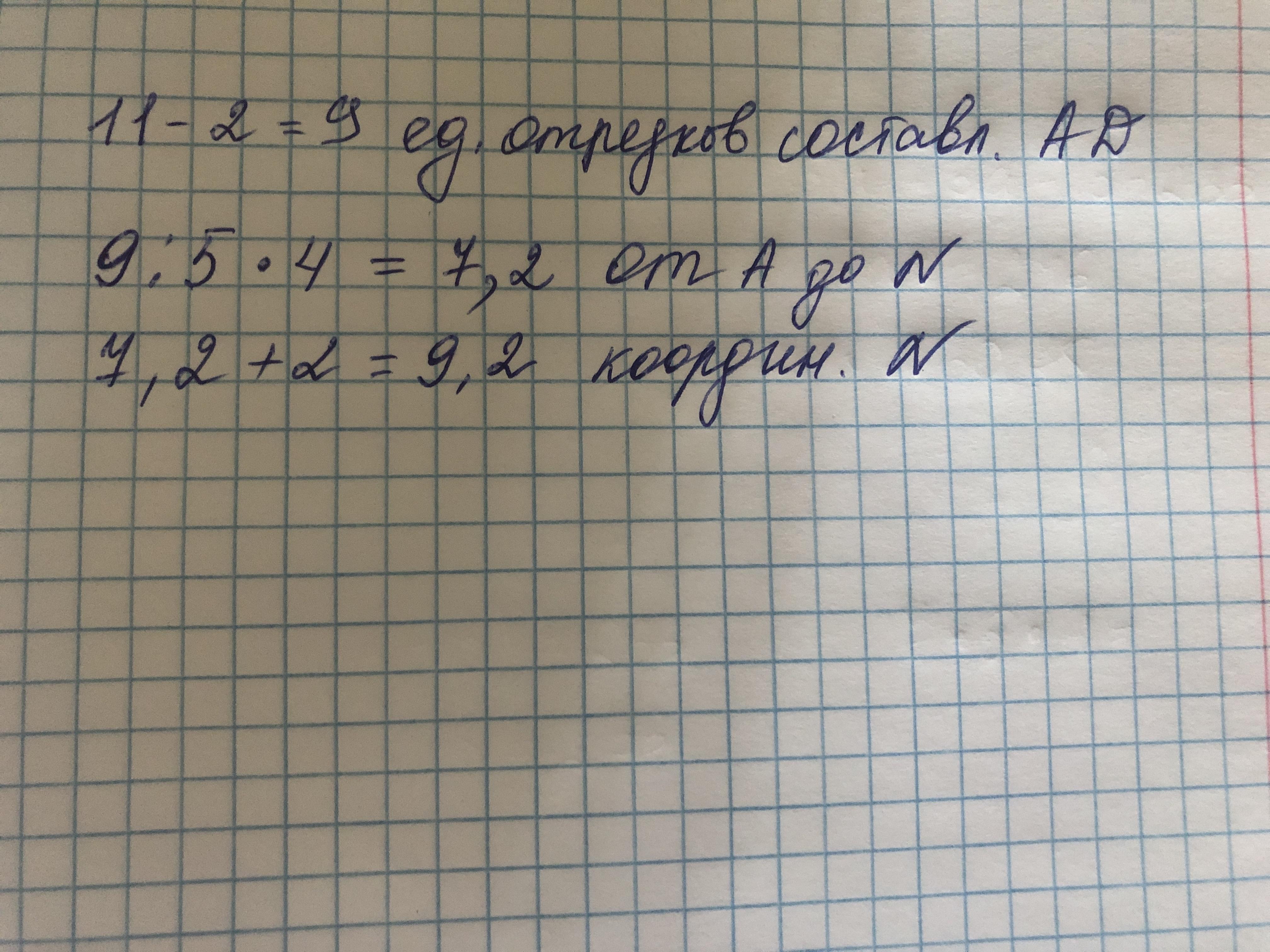 Найди координату точки N, расположенной между точками A и D,