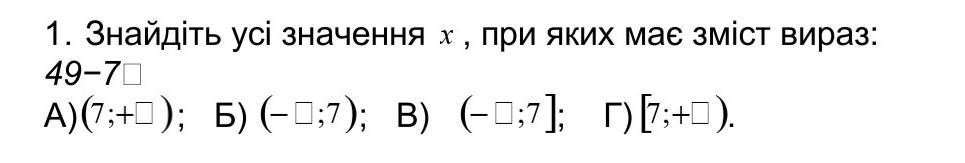 знайдіть усі значення х при яких має зміст вираз ✓49-7х