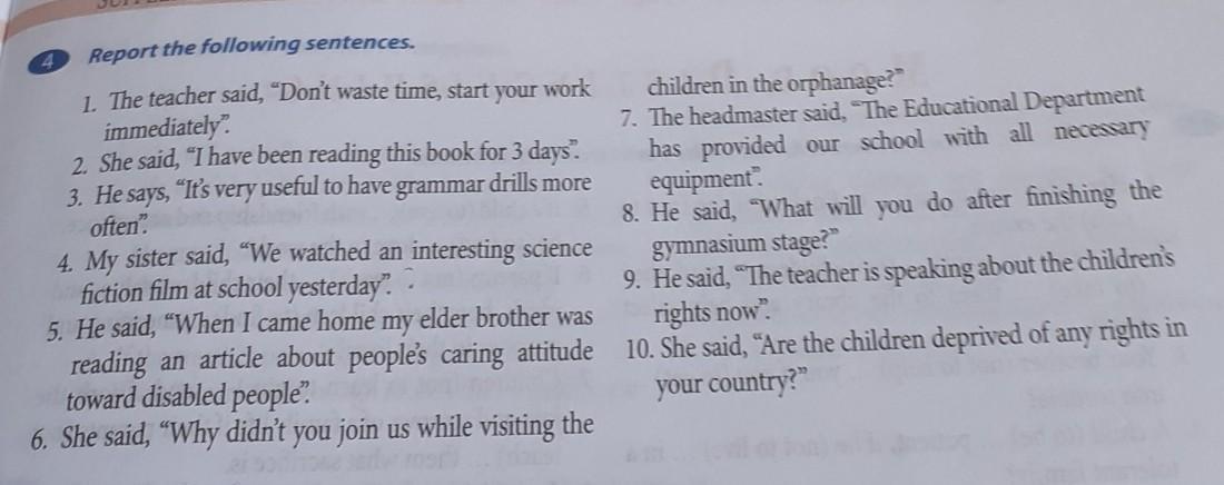 4. My sister said that they had watched an interesting science fiction film at school the day before.