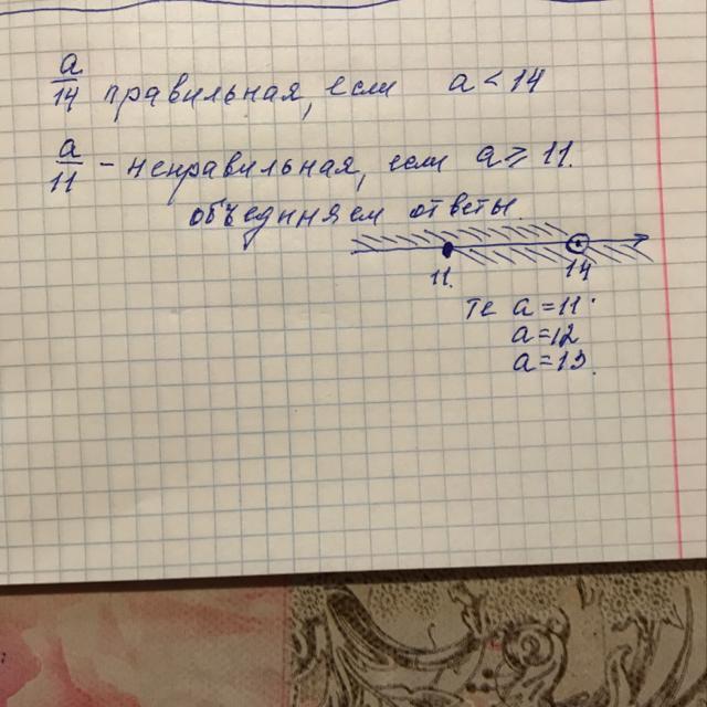 Сколько существует таких натуральных значений a что дроб a/14 будет правильной ,а дроб а/11 неправильной?