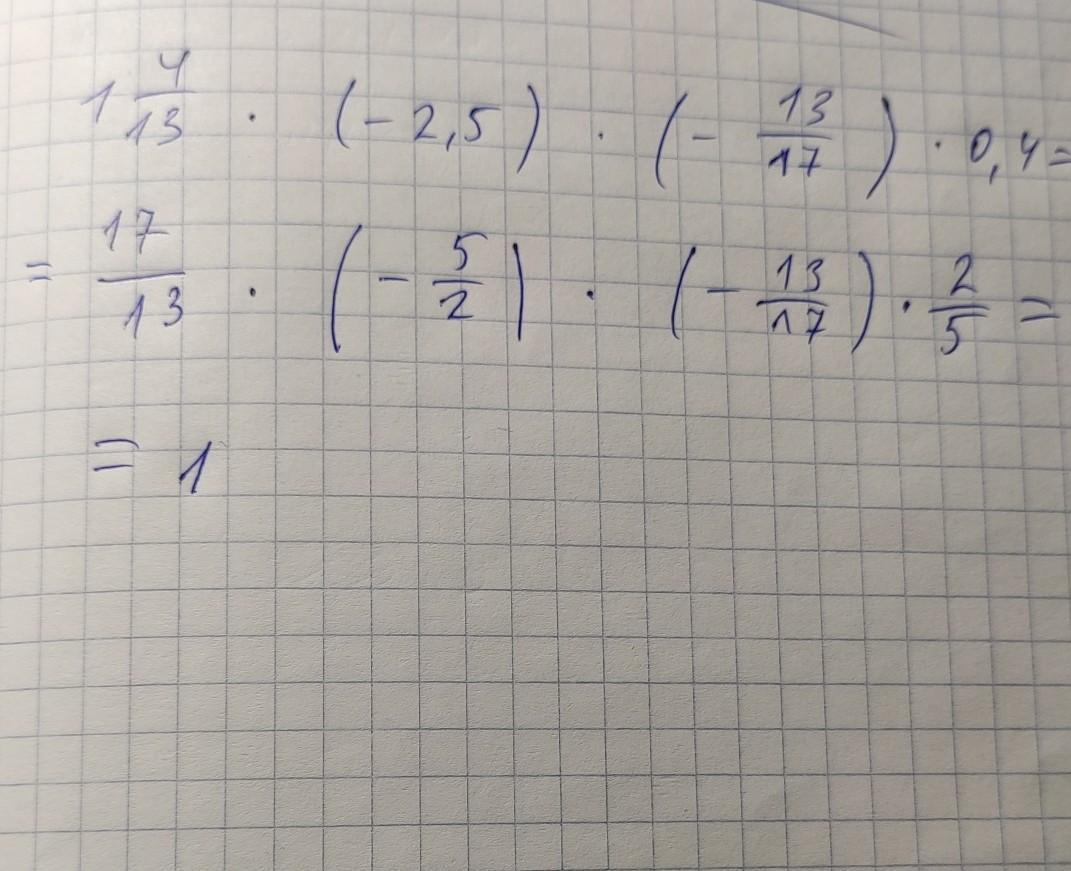 1⁴/₁₃×(-2,5)×(-¹³/₁₇)×0,4 = 1