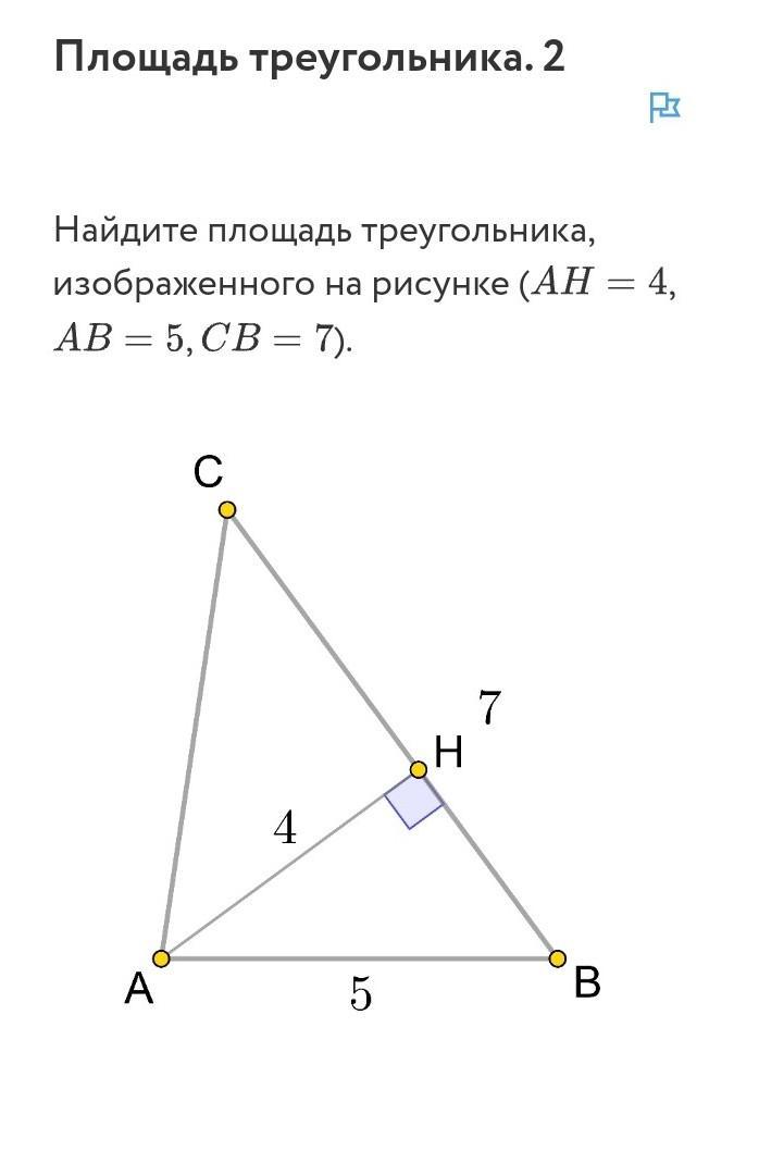 S=1/2×CB×AH=1/2×7×4=14 ед²