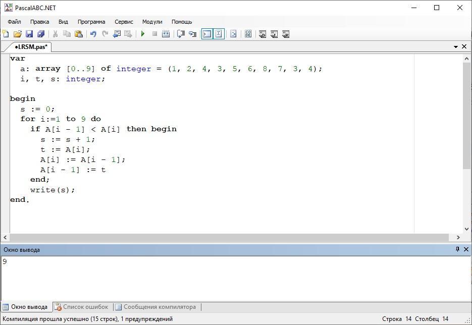 определите значение переменной s после выполнения следующего фрагмента программы: s:= 0; for i:=1 to 9 do if A[i - 1] < A[i] then begin s := s + 1; t := A[i]; A[i] := A[i - 1]; A[i - 1] := t end;