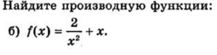 f(x)=\frac{2}{x^{2}} +x=2x^{-2} +x\\\\f'(x)=2(x^{-2})'+x'=2*(-2x^{-3})+1=-\frac{4}{x^{3}}+1\\\\Otvet:\boxed{f'(x)=-\frac{4}{x^{3}}+1}