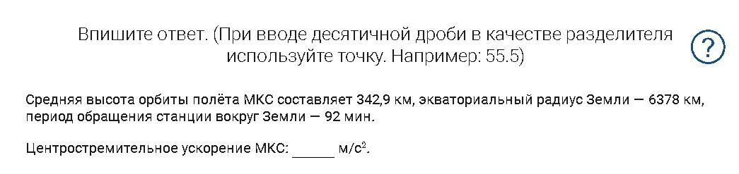 Центростремительное ускорение МКС: