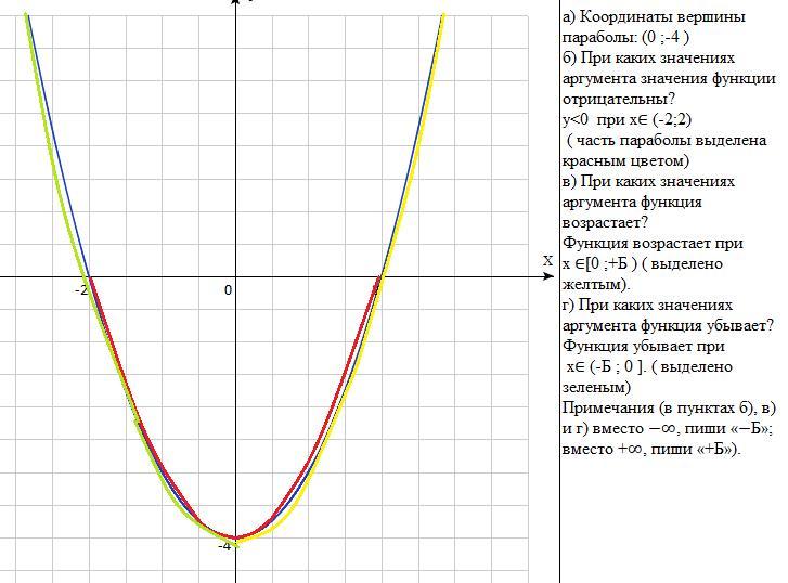 a) Координаты вершины параболы: х₀=0/2=0 , у₀=0-4=-4 ; (0 ;-4 ) .