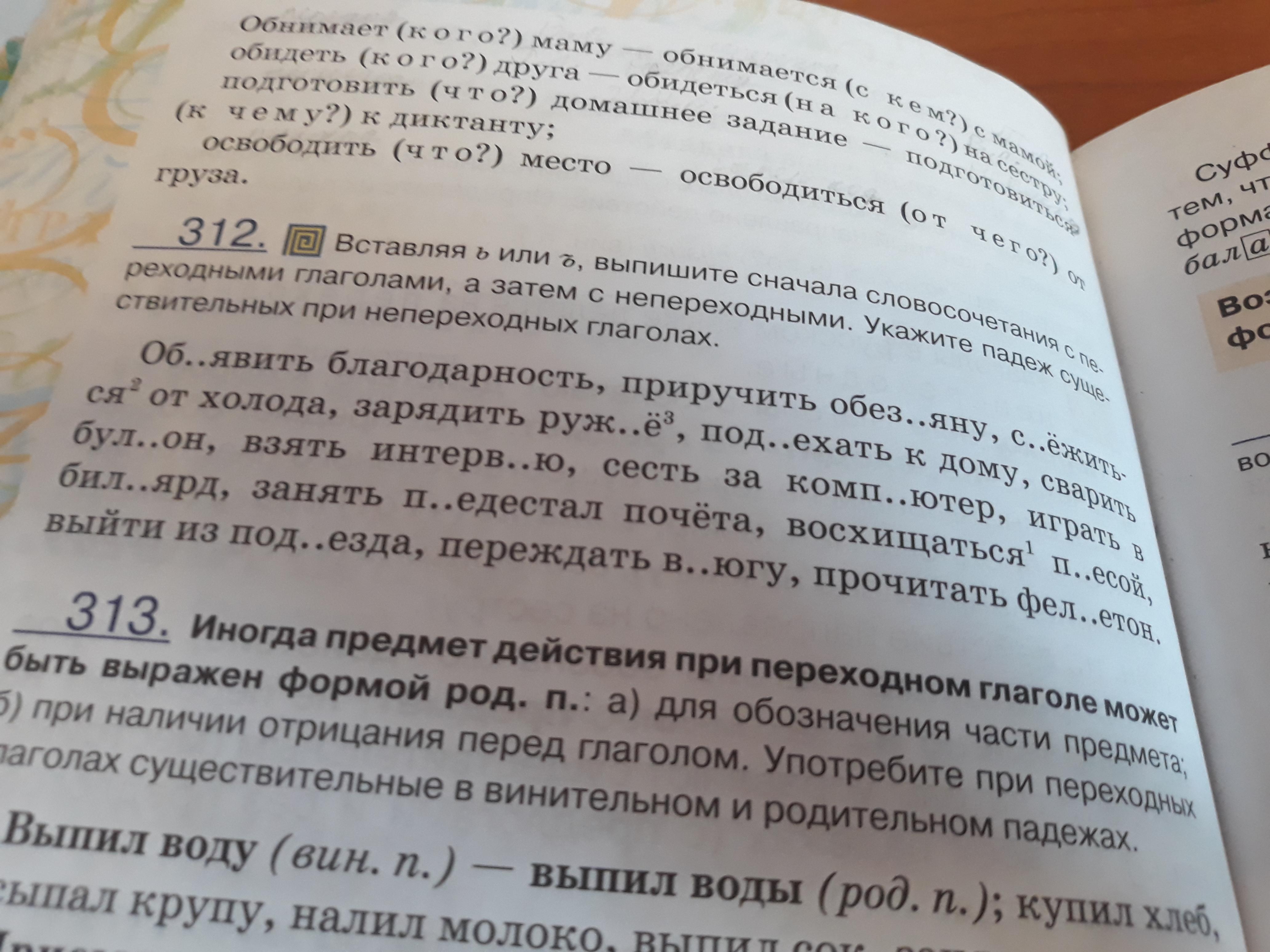 Помогите плиз иначе оставят на второй год:(((((( упр 312 ( подписать вопросы сущ-го в скобках , определить переходность глагола и подписать над ним).