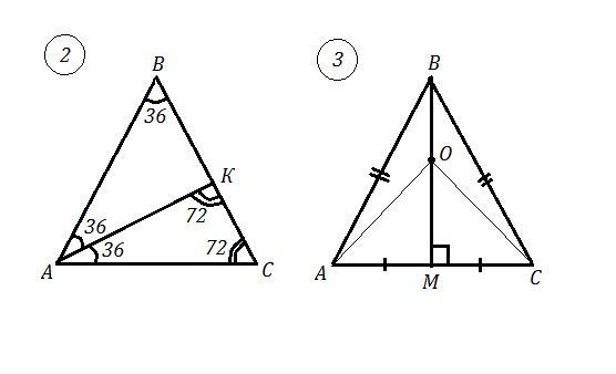 2) ΔАВС , АВ=ВС , ∠В=72°