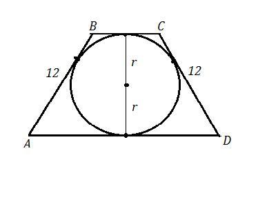 АВСД - равнобокая трапеция, АВ=СD-12 см , радиус вписан. окр. r=5 см .