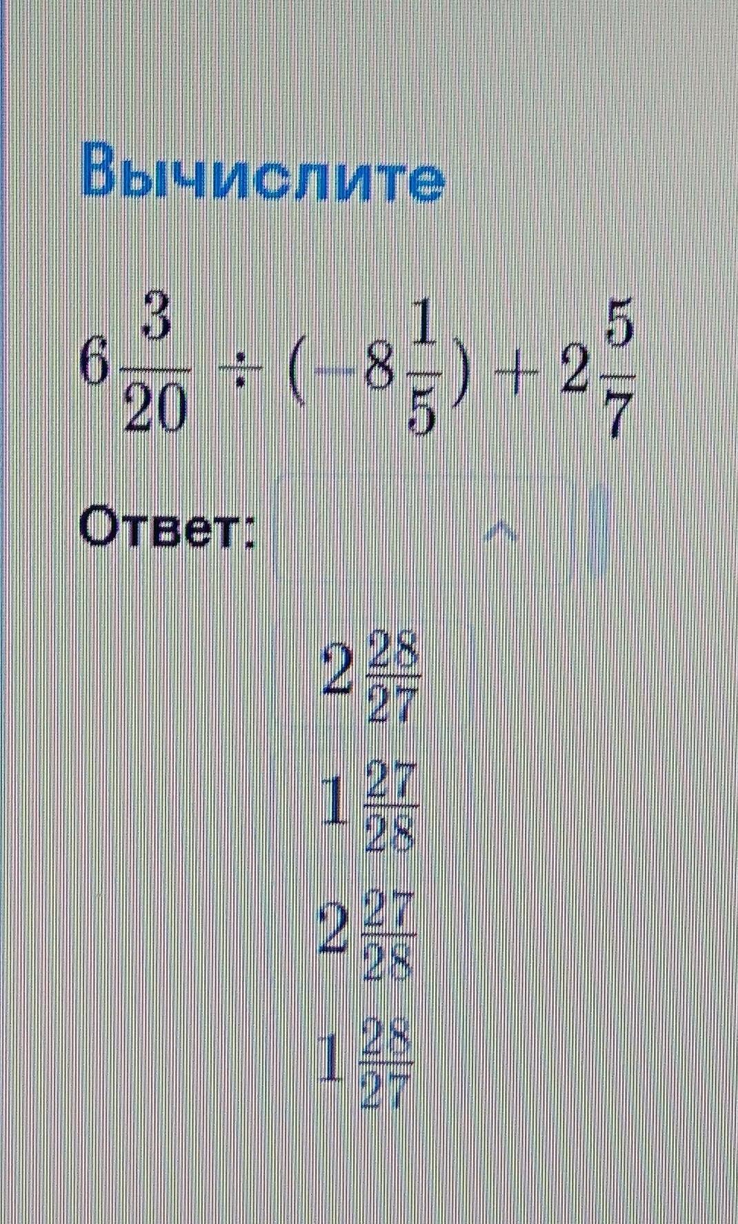 Пошаговое объяснение: Ответ второй 1 27/28 (одна целая двадцать семь двадцать восьмых)