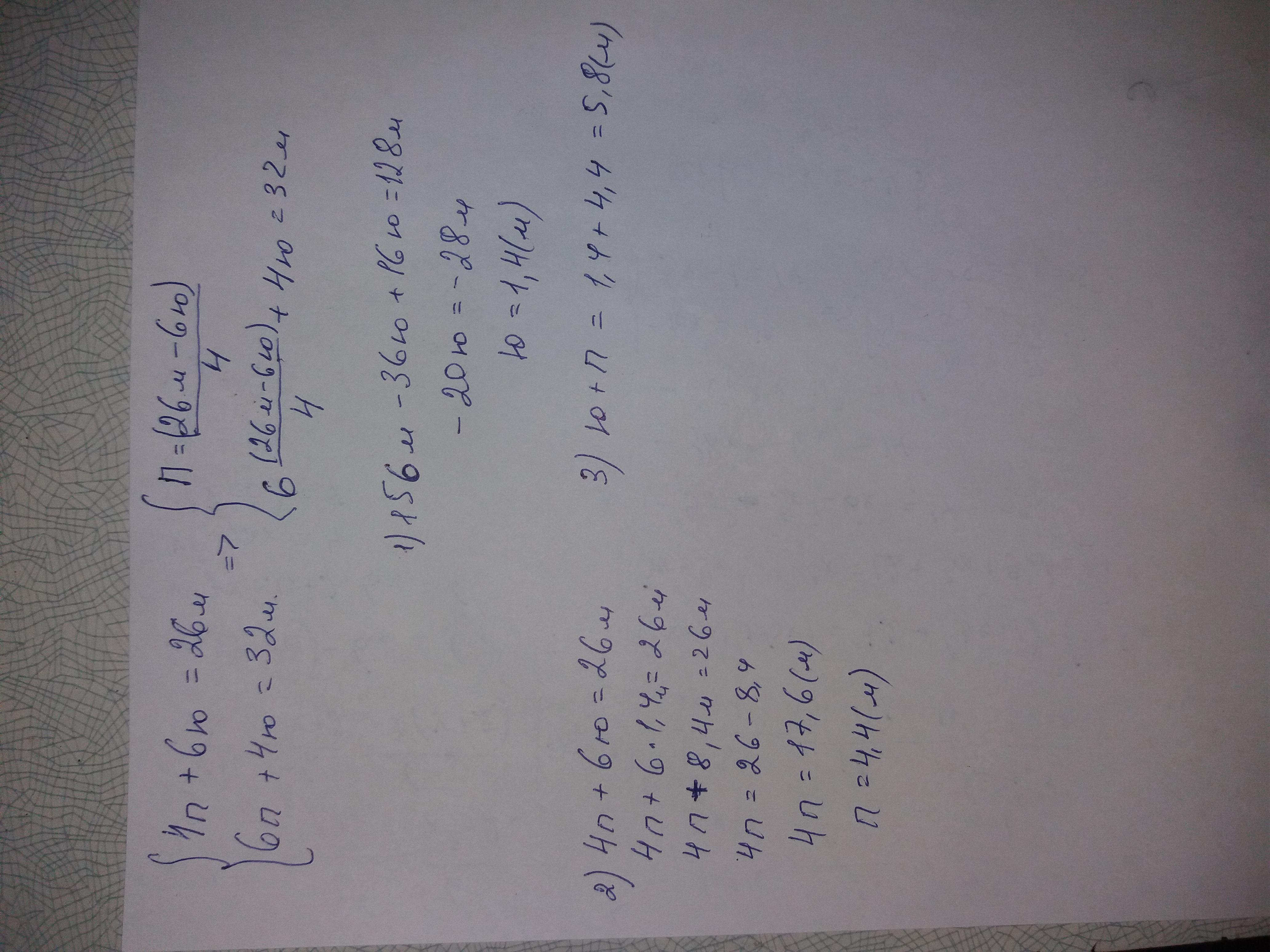 Решите задачу:На изготовление четырёх платьев и шесть юбок израсходовали двадцать шесть метров ткани, а на изготовление шести платьев и четырёх юбок израсходовали тридцать два метра ткани. Сколько ткани потребуется на пошив одного платья и одной юбки?