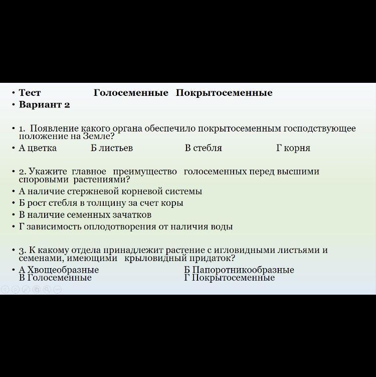 2. В (Папоротники размножаются с помощью спор, а голосеменные с помощью семян. У семян есть превосходство над спорами т.к. у семян есть запас пит. веществ который позволяет им сохранятся дольше спор.)