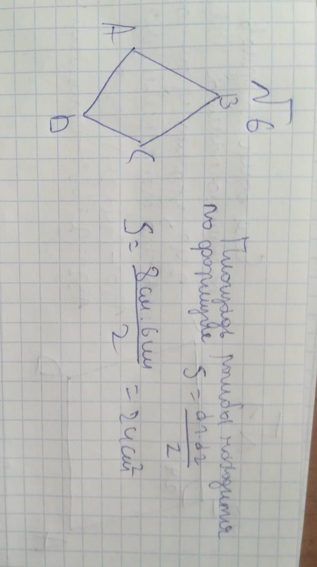 6. Найти площадь ромба, если его диагонали равны 8 см и 6 см.