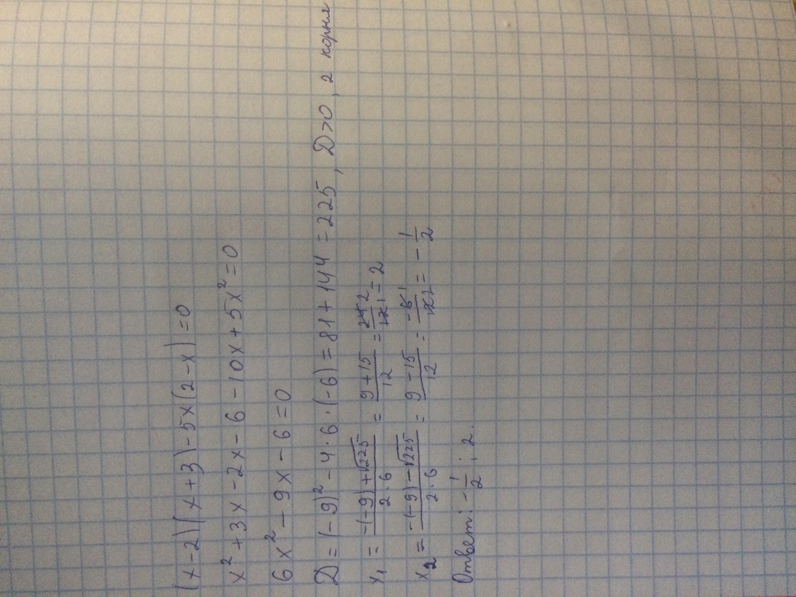 (x-2)(x+3)-5x(2-x)=6x²-9x-6